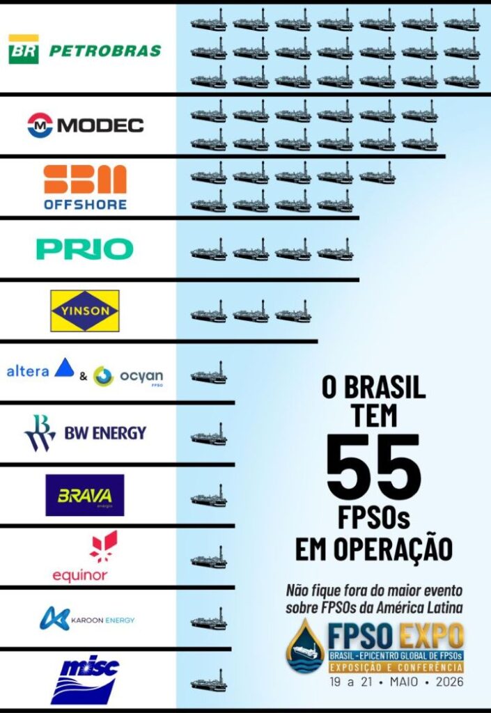 O Brasil é hoje o epicentro global dos FPSOs, com 55 unidades em operação — um reflexo direto do avanço brasileiro da exploração e produção de hidrocarbonetos em águas profundas e ultra-profundas. Esse avanço transformou o setor e consolidou o afretamento de FPSOs como um modelo de negócios robusto e estratégico, com petroleiras e construtores disputando espaço no ranking dos maiores proprietários de FPSOs.